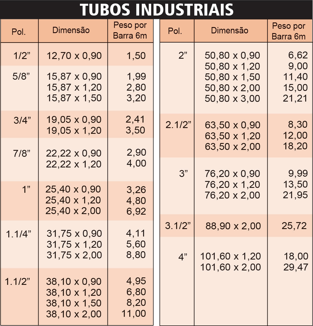 TUBOS QUADRADOS, RETANGULARES E INDUSTRIAIS